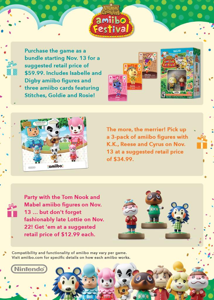 This past week, Nintendo of America revealed the release date of Animal Crossing: amiibo Festival, as well as some new information on some of the upcoming Animal Crossing amiibo, on Twitter. Animal Crossing: amiibo Festival has a release date of November 13 and will be releasing in a bundle which includes an Isabelle and Digby amiibo, as well as three amiibo cards for a price of $59.99. Take a look after the break to see what else is in store!