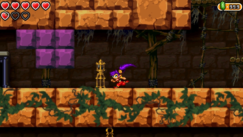 Pirate's Curse has an exceptional foundation for its gameplay, having been built upon the prior entries in the series. Using the sprites from Risky's Revenge as a base, they have been enhanced and feel much more animated than ever before. A lot of the time you may find yourself just simply admiring the stunning sprite work and animations. The core gameplay isn't too different from Risky's Revenge either, but with a greater expanded world map. The world is split up into smaller regions but with many hidden secrets to be found, owing itself to Metroid's hidden paths. Each secret area holds hidden pickups to expand health or the collectable dark magic. This magic's purpose is left mostly a mystery until later on in the game, but the Tinkerbats of old have been transformed by the Pirate Master into monstrous Cacklebats and defeating them grants you a portion of magic. The dungeons of each region serve as a means to locate and destroy a section of the Pirate Master's power, as well as grant new equipment to Shantae. These items grant her new abilities which can aid in travel and even be used to find secrets in the world. Completing each dungeon grants you access to a new region in Sequin Land.