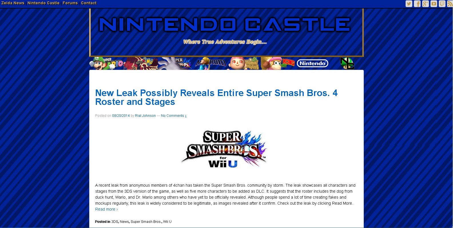 With limited staff and no dedicated news reporters, the site dawdles in inactivity for a few months. Komodo_Zero does his part to keep the forums alive, but they haven't grown since they launched. Pocodudeface does post news at an irregular rate, especially covering the upcoming Smash Bros. games for the 3DS and Wii U. Komodo_Zero puts together a popular top ten list and database for the music in both games. During this time, Nintendo Castle begins receiving press copies of games from independent developers on the Wii U and 3DS. Many of the reviews written for theses games are still available on the site to this day.