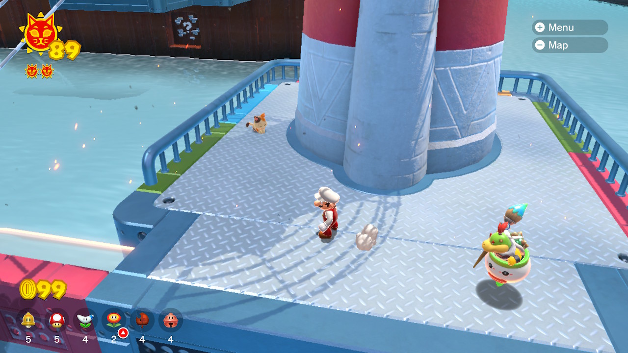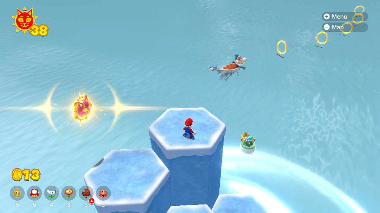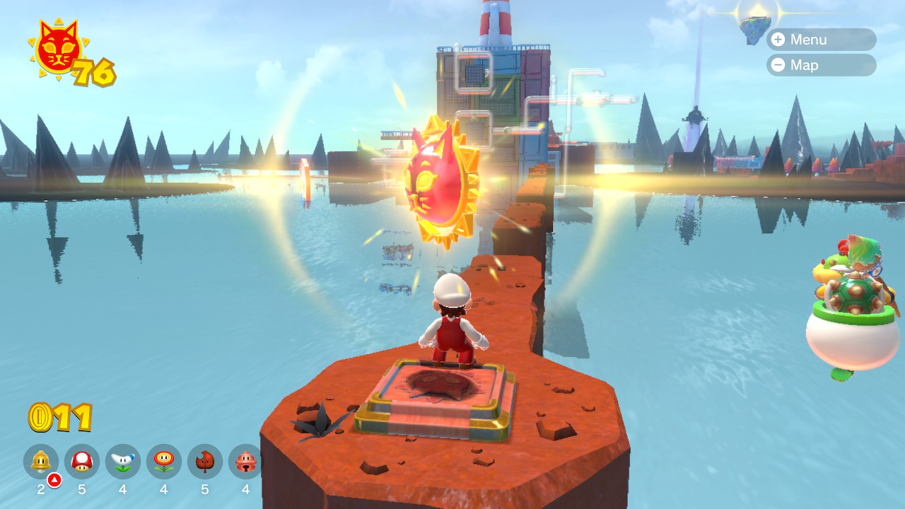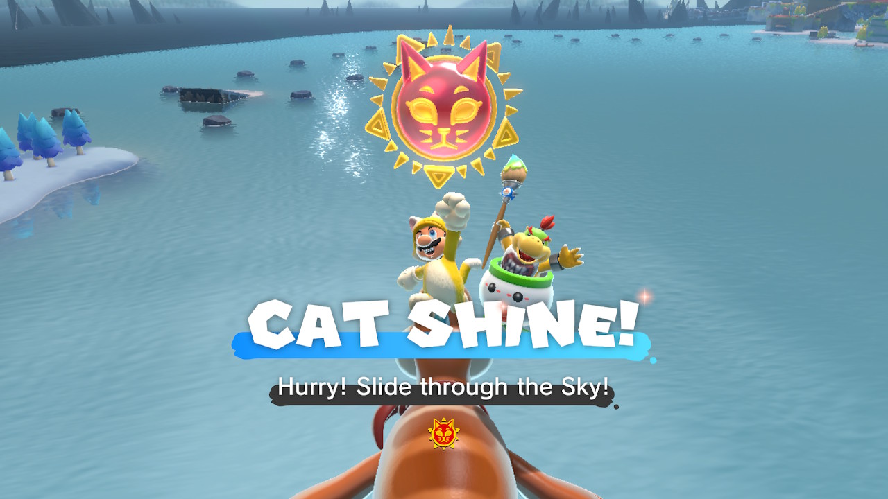 In addition to the Cat Shines found in the 12 main courses of the game, a total of 40 Cat Shines can be found around the overworld in Lake Lapcat. Below is a guide to collecting all the Lake Lapcat Cat Shines. Some of the shines must be collected before others, but there are many possible orders in addition to the order listed below. 15 of the Lake Lapcat Cat Shines must be collected in the post-game after defeating Bowser and seeing the credits for the first time.