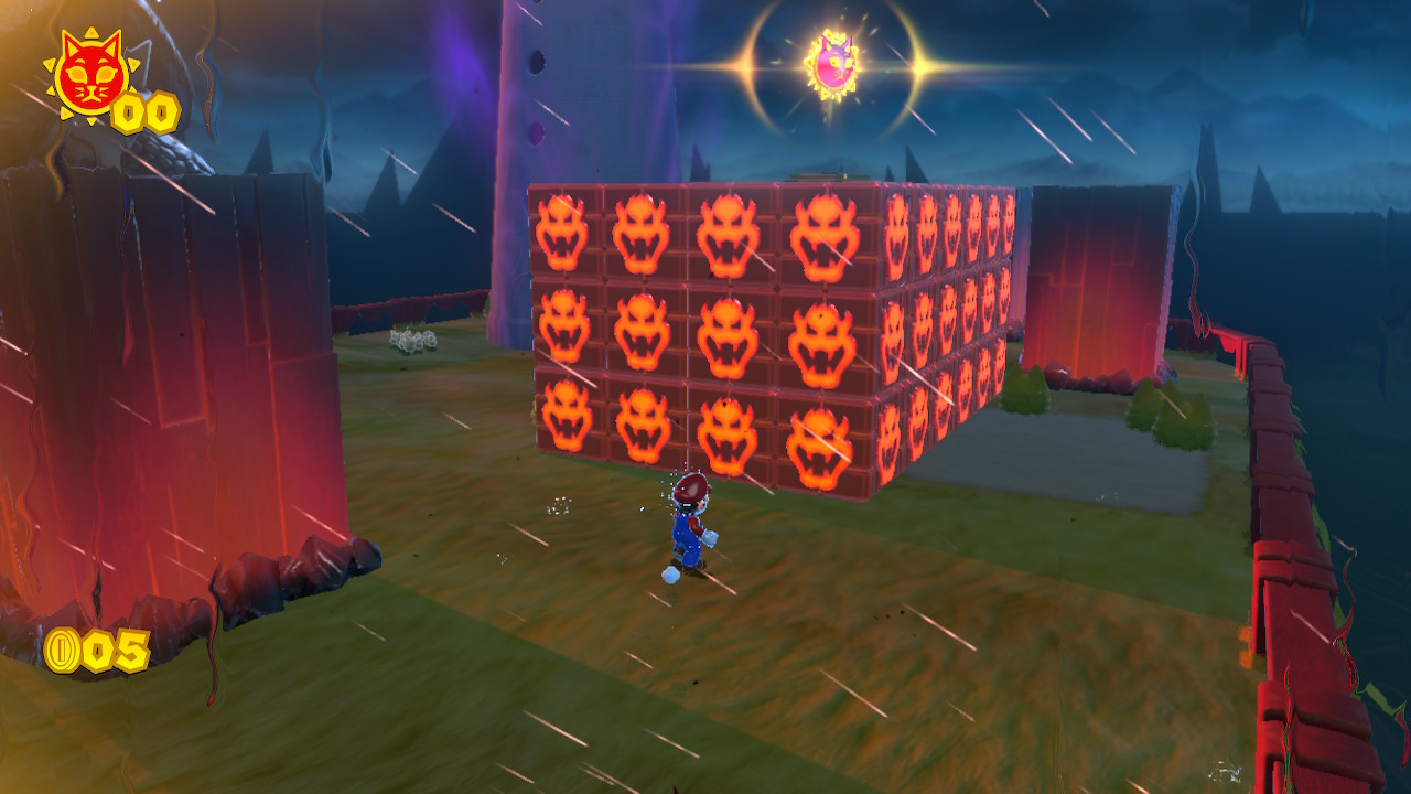 During any time when Bowser is on his rampage (Bowser's Fury), head to the Fury Blocks that block an alcove in the sand. This is directly below the coin tower. Wait for Bowser to launch a fireball that destroys the blocks. Inside the alcove is Cat Shine #5.