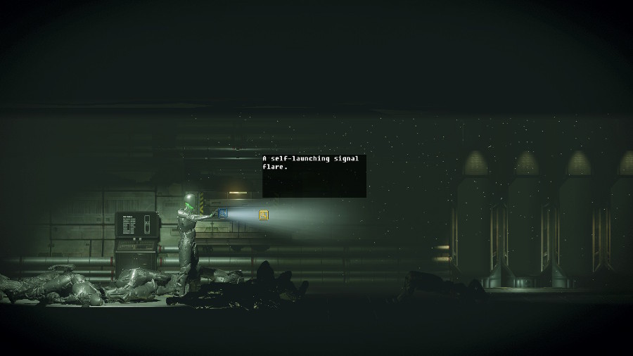 Use your keycard on the card reader here and enter the room on the right. Read the log files in this room. To the right of the computer is a key with a "tacky keychain" that you can pick up. Now head to floor 2. Enter the room on the right and open the footlocker by the middle bunk with the key. Head left and use the magazine on the pods of drones to cover their faces. You can continue left and read the messages on the computer if you like.