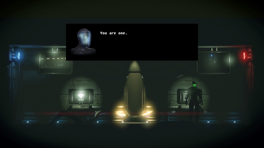 You'll be back at Switching Station 4. Head up and right to the next room. Blast through the white door to the right here. Take the relay to E2C Main Site. Continue right and interact with the access point. Defeat the several enemies that spawn and interact with the unit here. He'll introduce himself as "One". He'll kick you out, and you'll need to defeat another enemy. Re-enter and you'll be able to convince One to let you tag along.