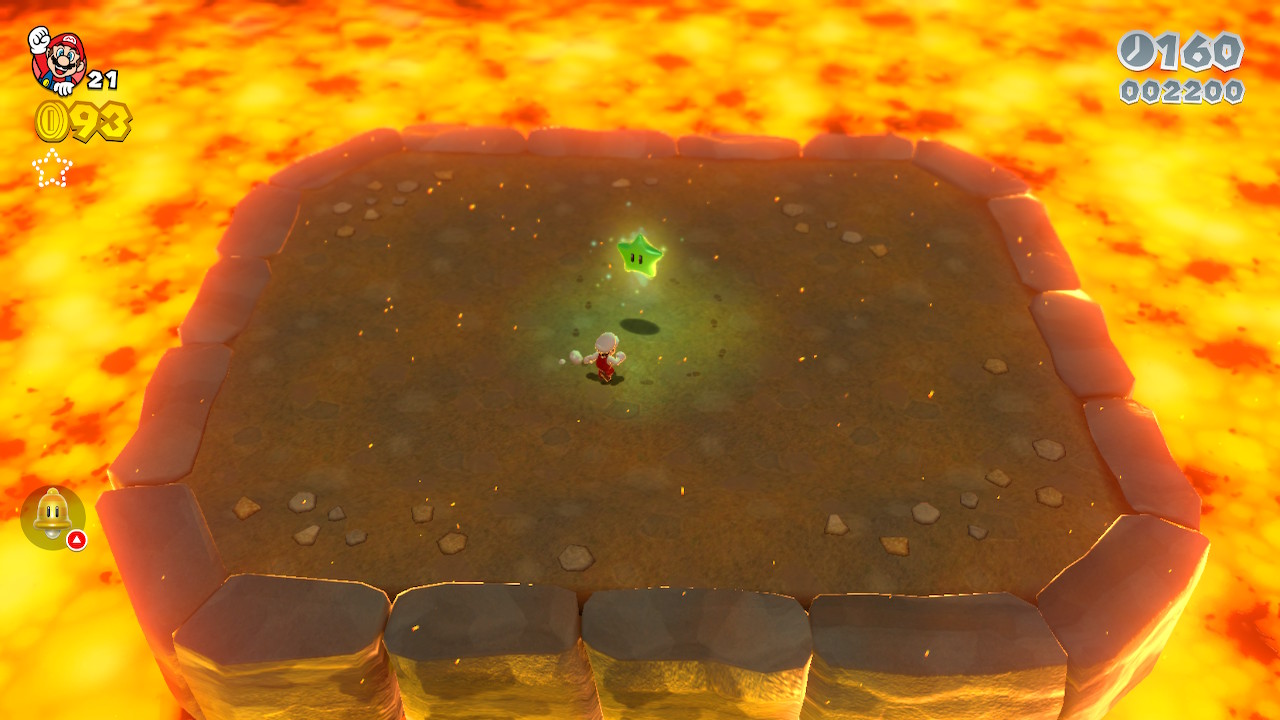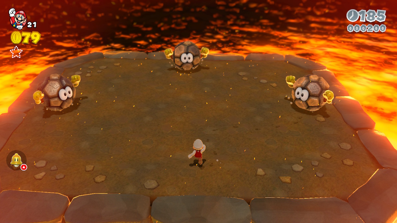 Defeat all four Brolders by jumping on them and tossing them into the lava to get Green Star Number 1.