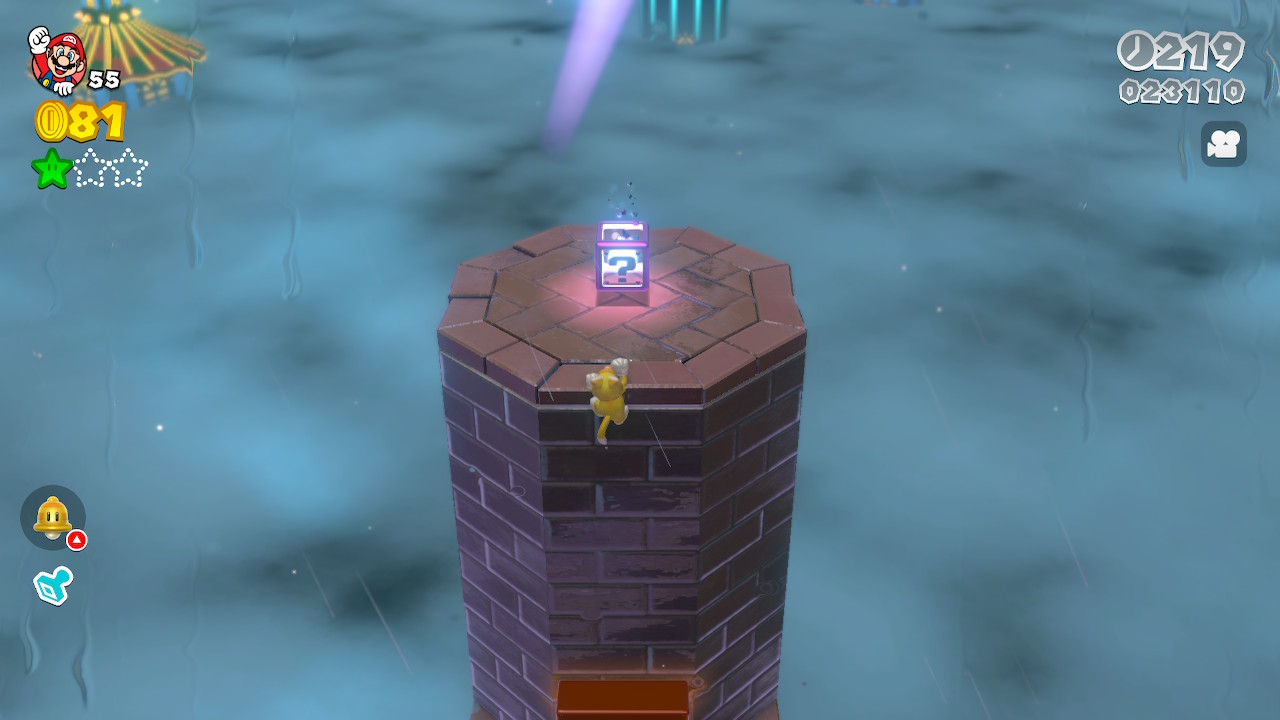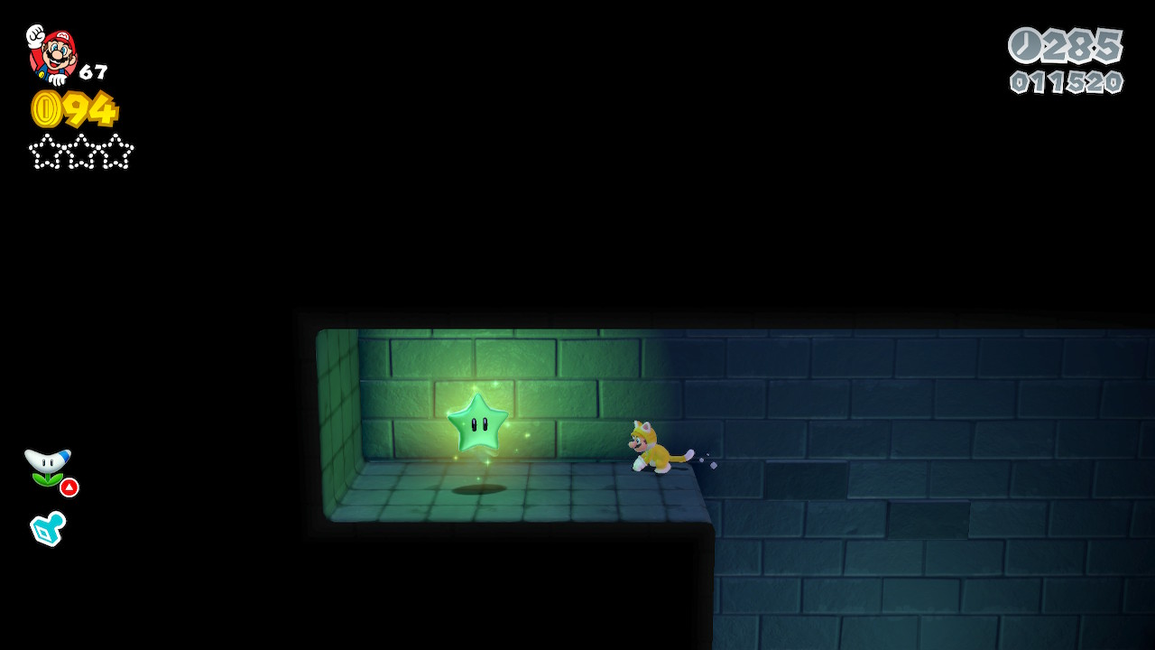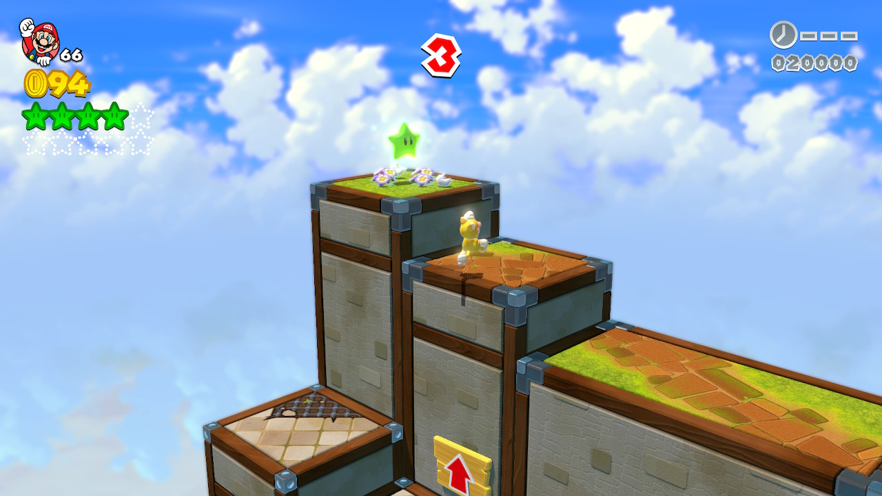 If you've made it to the checkpoint flag without a green star, go back left. You can enter into a hidden alcove here by using a Super Bell and collect Green Star Number 1.