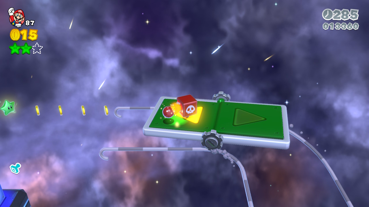 In the final area of the level with directional platforms, use the Canon Block and switches to lead you to Green Star Number 3 to the north. Make sure to quickly switch back directions to avoid falling to your doom.